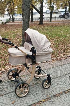 Детская коляска - трансформер Luxmom бежевый, всесезонная, автолюлька в очень хорошем состоянии