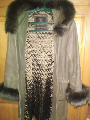 Кожаное полупальто с капюшоном . Мех- песец. По желанию мех отстегивается на капюшоне и рукавах.